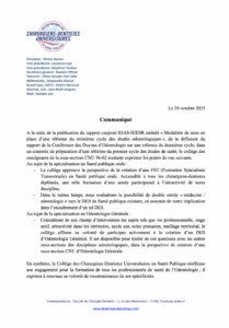29 octobre 2025 — Le point de vue du collège concernant la spécialisation en santé publique orale et en odontologie générale
